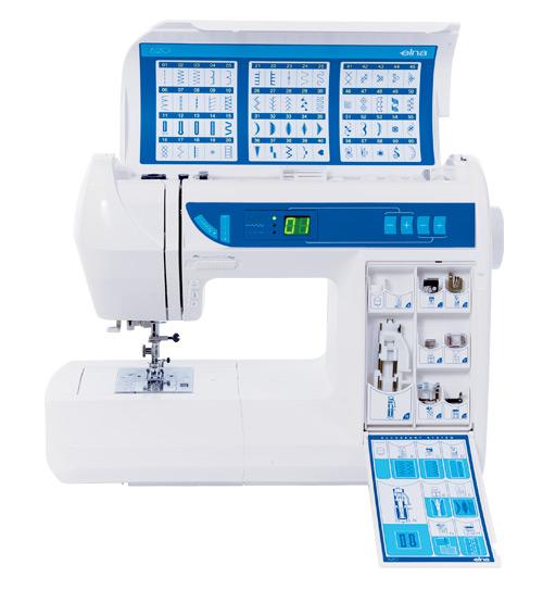 • 60 druhů stehů včetne obšívání knoflíkových dírek a stehů na prošívání, šití historických oděvu a stehů na klasické šití